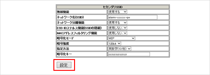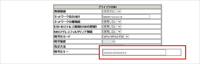 設定完了後は、ここで変更したものがAtermの暗号化キーになります。