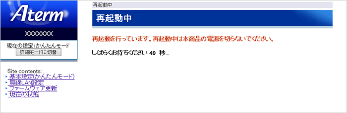 この画面が表示されている間は、絶対にAtermの電源を切らないようにしてください。