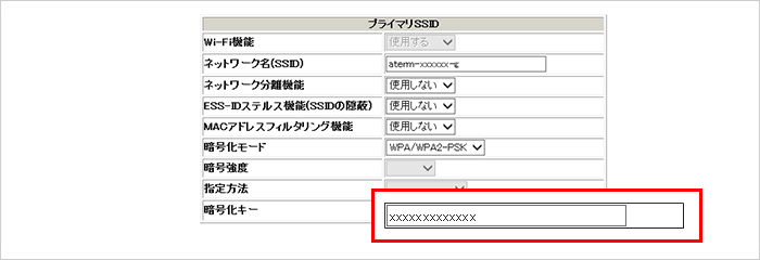 設定完了後は、ここで変更したものがAtermの暗号化キーになります。