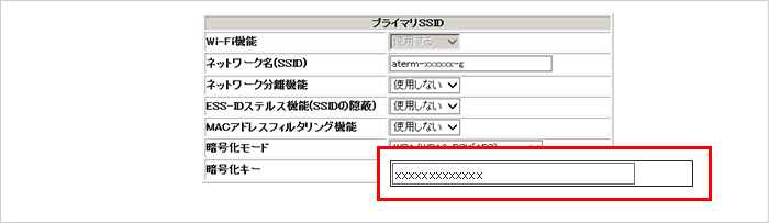 設定完了後は、ここで変更したものがAtermの暗号化キーになります。