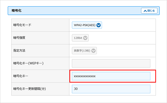 設定完了後は、ここで変更したものがAtermの暗号化キーになります。
