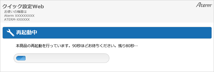 この画面が表示されている間は、絶対にAtermの電源を切らないようにしてください。