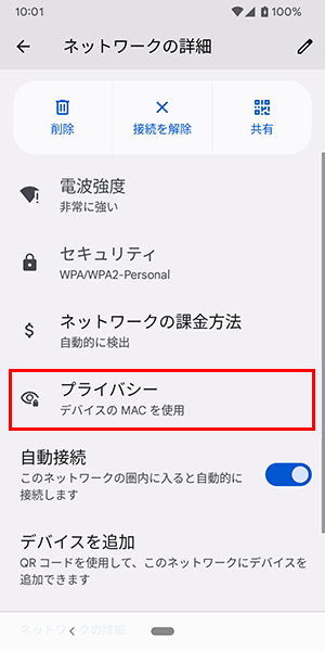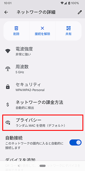 以下の手順でランダムMACの停止を行ってください。