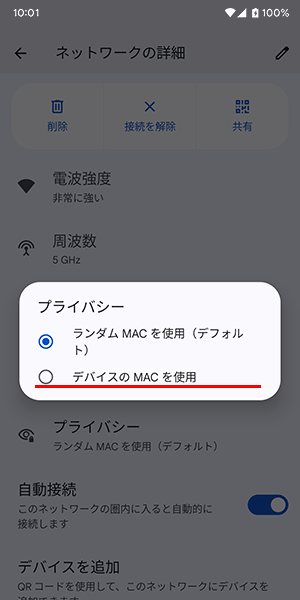「デバイスのMACを使用」をタップしてください。