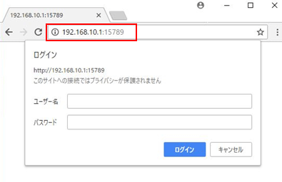 Webブラウザのアドレス欄に、AtermのIPアドレスと手順3で控えたアクセスポート番号をコロン(:)でつなげたものを入力(例:192.168.10.1:15789)してください。