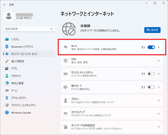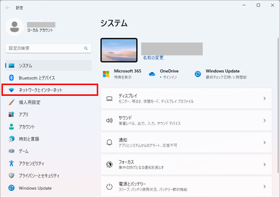 Windows の設定画面より「ネットワークとインターネット」をクリックする。