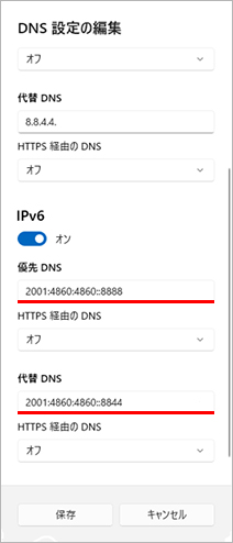ご契約のプロバイダの DNS サーバー情報(IPv6)が提供されている場合