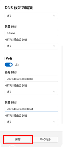 「IPv6」を「オン」にする。(IPv4のやり方を参照)