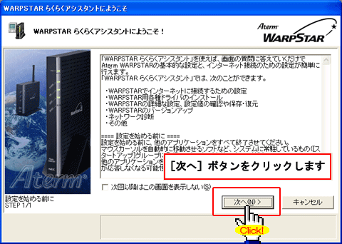 1.らくらくアシスタントを起動し、[次へ]ボタンをクリックします