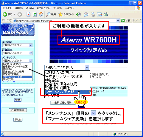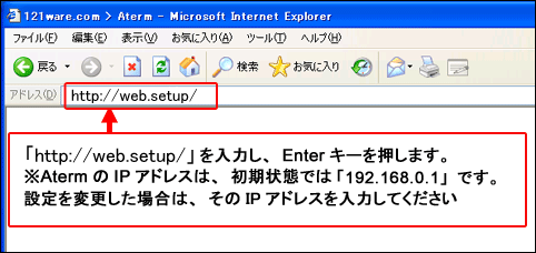 - 当画面は、Windows XPでAtermWR7600Hを使用した場合の画面です