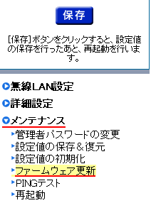 4.左メニューから、『メンテナンス』-『ファームウェア更新』を選択してください。
