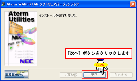 - 当バージョンアップ画面は、Windows XPでAtermWL50Tを使用した場合の画面です