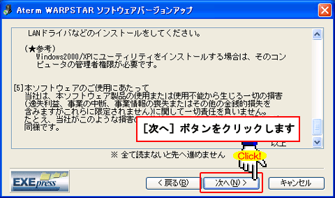3.注意事項をすべてよく読み、[次へ]ボタンをクリックします