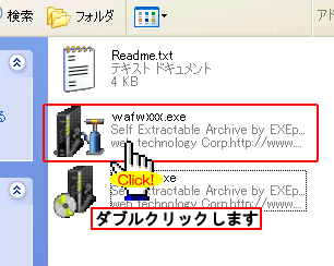 6.以下のとおり、「wafwXXX.exe」のアイコンをダブルクリックします(XXXには、バージョンの数字が入ります)