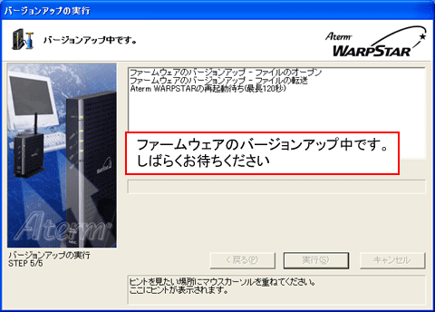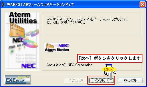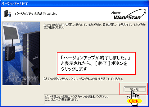 - 当バージョンアップ画面は、Windows XPでAtermWA7500Hを使用した場合の画面です