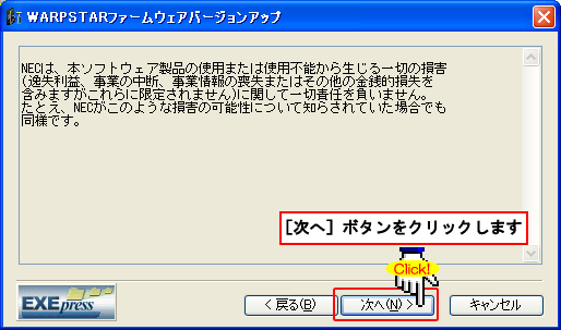 9.らくらくバージョンアップが起動したら、[次へ]ボタンをクリックします
