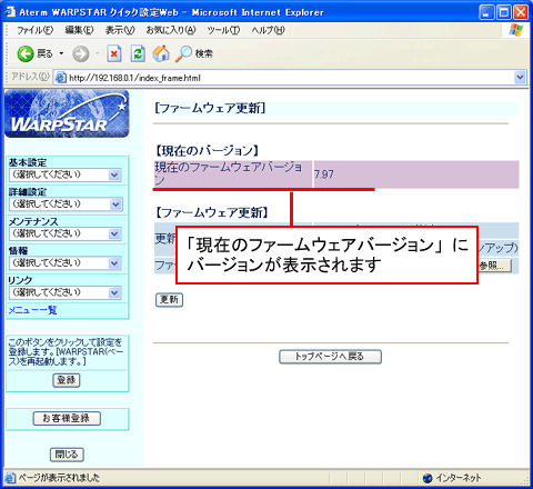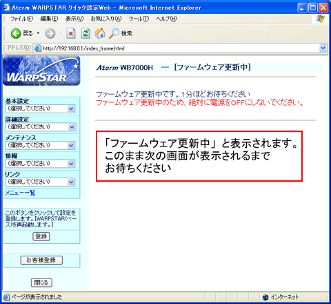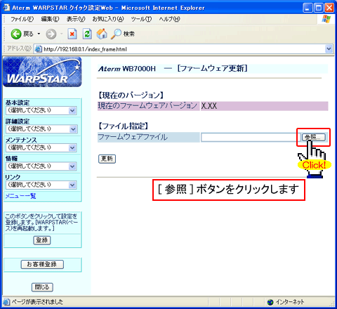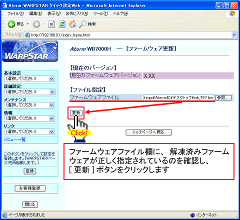 - 当バージョンアップ画面は、Windows XPでAtermWB7000HとAtermWL11CBを使用した場合の画面です