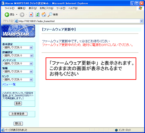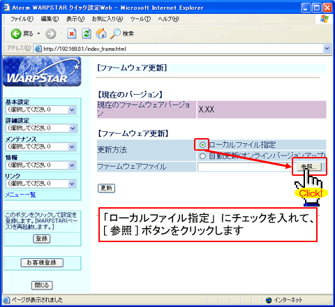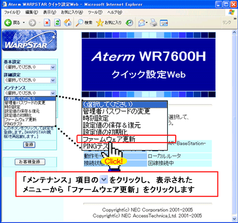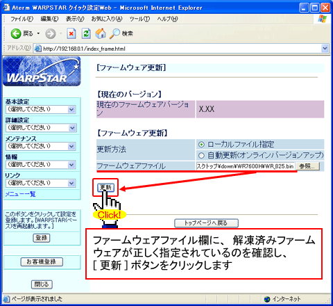 - 当バージョンアップ画面は、Windows XPでAtermWR7600Hを使用した場合の画面です