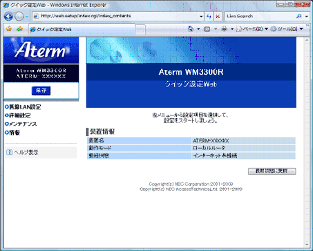 - Atermに無線接続した機器でクイック設定Webを開く場合は、プライマリSSID側に接続します。