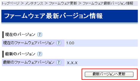 「現在のファームウェアバージョン」と「最新のファームウェアバージョン」に記載されているファームウェアバージョンが同じ場合は、ファームウェアの更新は不要です。