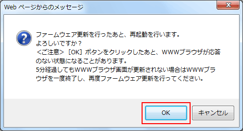 【OK】ボタンを押して画面を閉じてください。以上でファームウェアの更新は完了です。