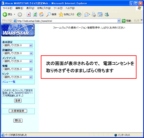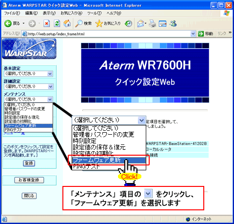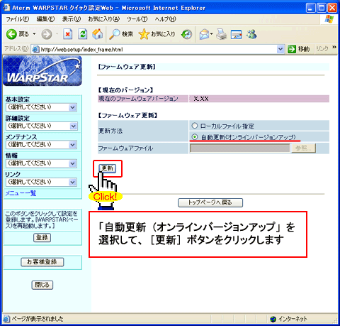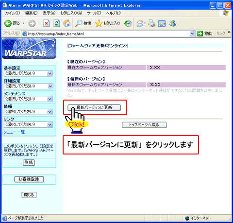 - 当バージョンアップ画面は、Windows XPでAtermWR7600Hを使用した場合の画面です