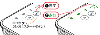 1.SETボタン(らくらくスタートボタン)を長押し(約10秒)して、POWERランプが緑点滅をはじめたら、SETボタンを離してください。