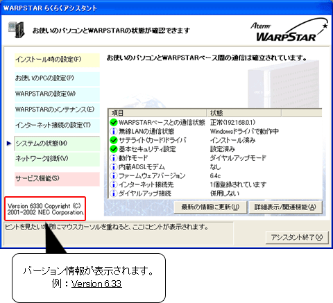 当バージョンアップ画面は、Windows XPを使用した場合の画面です