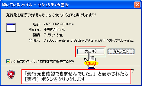 当バージョンアップ画面は、Windows XPでAtermWB7000H2とAtermWL11C2を使用した場合の画面です