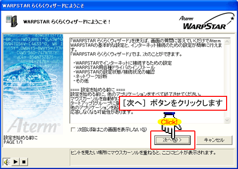 7.[条項をお読みいただき、[次へ]ボタンをクリックします