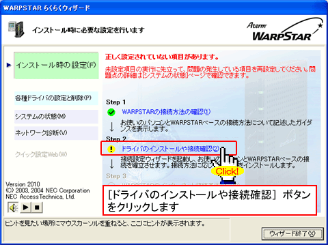 13.[ドライバのインストールや接続確認]の項目をクリックします