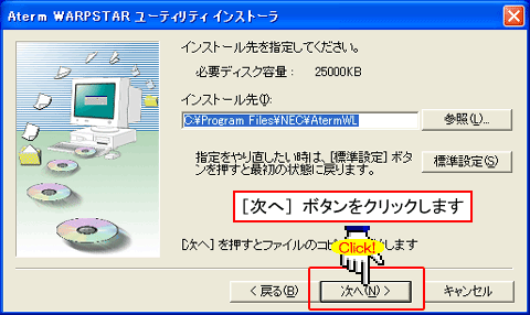 9.インストール先を確認し、[次へ]ボタンをクリックします