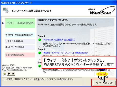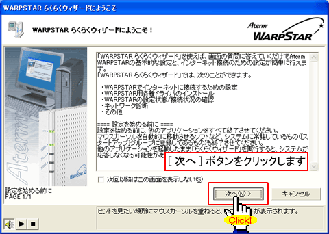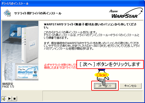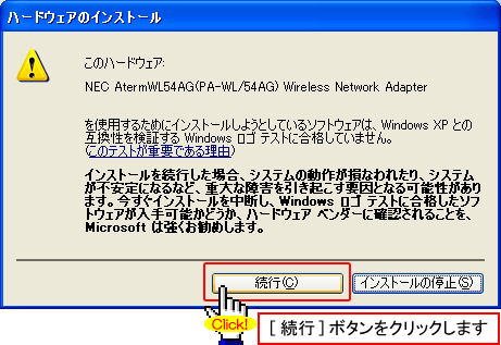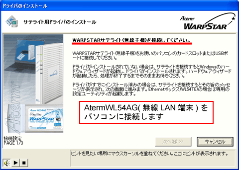 事前にパソコンからAtermWL54AGを外した状態で説明しています