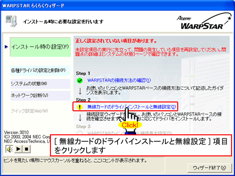 13.[無線カードのドライバインストールと無線設定]の項目をクリックします