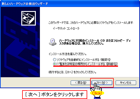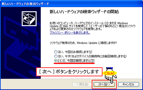 20.新しいハードウェアの検索ウィザードの開始画面が出てきたら、以下のとおり、