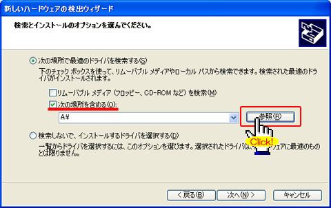 20-3.[次の場所で最適のドライバを検索する]-[次の場所を含める]にチェックを入れ、[参照]ボタンをクリックします