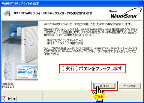 手順1の実行後、次のような画面が表示された場合は、[実行]ボタンをクリックすると手順2の画面が表示されます