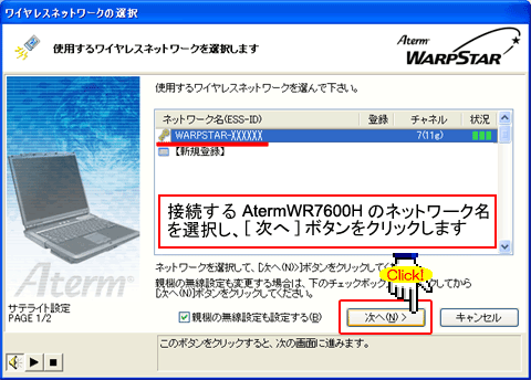 22.接続するAtermWR7600Hのネットワーク名を選択し、[次へ]をクリックします