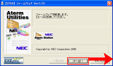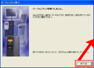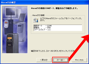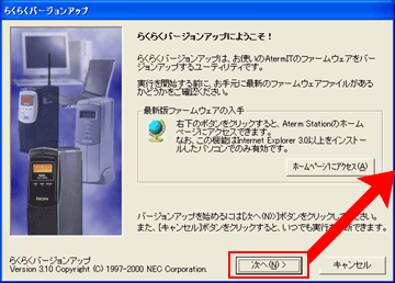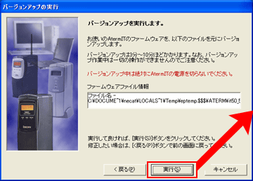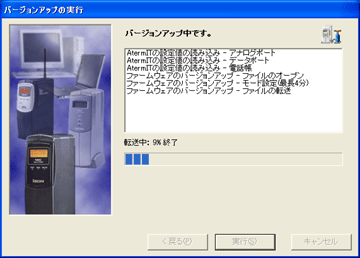 当バージョンアップ画面は、Windows(R) XPを使用した場合の画面です。また、ケーブルはシリアル(RS-232C)ケーブルを使用しています