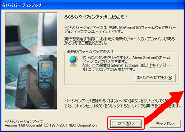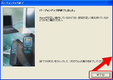 当バージョンアップ画面は、Windows(R)でAtermIT75を使用した場合の画面です。また、ケーブルはシリアル(RS-232C)ケーブルを使用しています