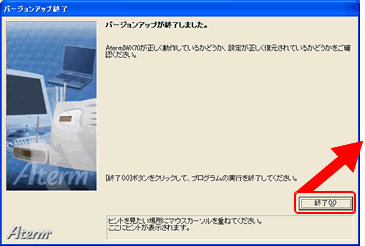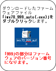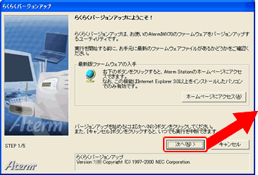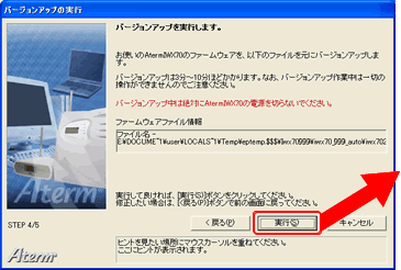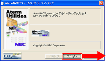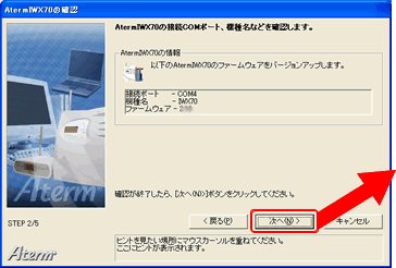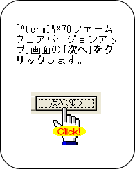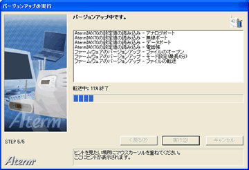 当バージョンアップ画面は、Windows(R)でAtermIWX70を使用した場合の画面です。また、ケーブルはシリアル(RS-232C)ケーブルを使用しています