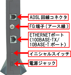 ADSL回線コネクタ 回線 ADSL回線ケーブルを使用してADSL回線に接続するためのポートです。