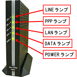 LINEランプ 点灯 ADSL回線のリンクが確立しています。