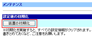 4.「設定値の初期化」画面が表示されましたら、「装置の初期化」ボタンを選択します。