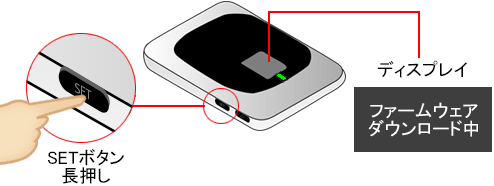 3.SETボタンを長押しし、ディスプレイに「ファームウェアダウンロード中」と表示されたら放す