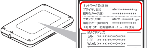 ネットワーク名(SSID)と暗号化キーの記載場所