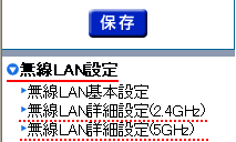 3.クイック設定Webが開きましたら、左メニューの「無線LAN設定」を選択し、「無線LAN詳細設定(2.4GHz)」もしくは「無線LAN詳細設定(5GHz)」を選択します。