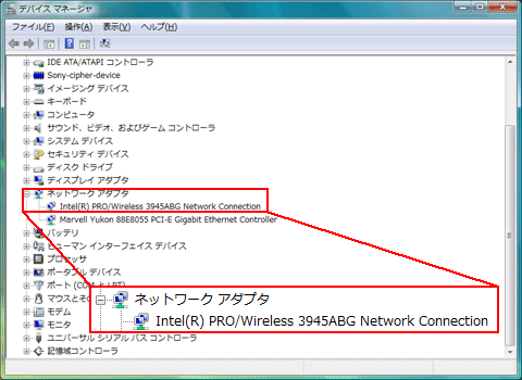 お客様がお手持ちのパソコンのデバイスマネージャで、「Intel(R)Pro/Wireless 3945 ABG Network Connection」「Intel(R) Wireless WiFi Link4965AG」「Intel® Wireless WiFi Link4965AGN」と表示されるパソコンが該当します。不明の場合には、お手持ちのパソコンのお問い合わせ窓口にて、内蔵無線LANチップの型番をご確認ください。