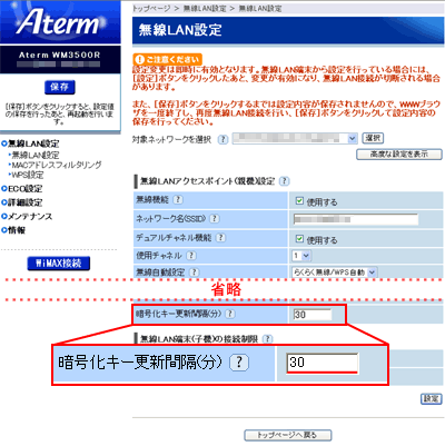 複数台の子機を同時に使用した場合、AtermWM3500RのWPA/WAP2の暗号化キー更新が適切に実施されず、無線LAN通信ができなくなる場合があります。
