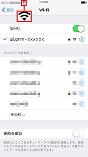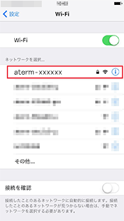 4.周囲の無線LANアクセスポイントの一覧が表示されます。事前準備で確認したAtermのネットワーク名(SSID)をタップします。